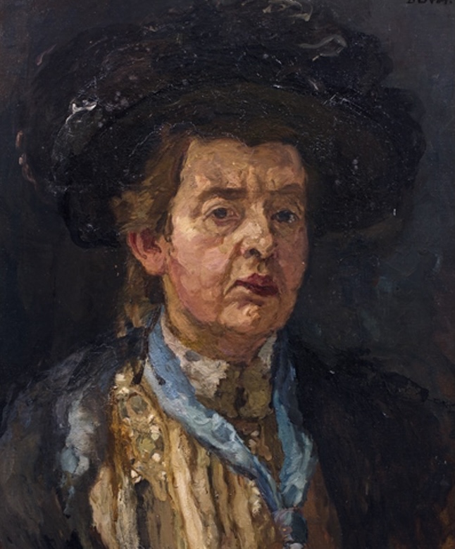 Vanaf een banier voor de deur van Museum Gouda kijkt een vrouw met strenge blik neer op de passanten. Wie is de vrouw achter dit donkere brillenglas? De tentoonstelling over Jo Koster, die tot en met 4 januari te zien is geeft antwoord op deze vraag. Dit voorjaar kwam ik haar naam in Museum de Wieger ook tegen. In de expositie De schoonheid van het onbekende was Kosters werk te zien naast tijdgenoten als Otto van Rees, Dirk Filarski, Hendrik Jan Wolter en Mies Carsten. In navolging van Vincent van Gogh trokken deze kunstenaars in de late 19e en vroege 20e eeuw naar de Côte d’Azur en Italië. De vrijgevochten Koster belandde in de jaren ’20 met haar auto zelfs in Dalmatië. Aan die reis herinnert een doek met een solitair weergegeven vijgenboom, dat voor de expositie in Gouda als ‘voelschilderij’ voor slechtzienden gereproduceerd is. Het donkere glas van Kosters bril bedekte het oog waarin zij sinds 1939 het licht miste. Deze handicap stond haar artistieke creativiteit echter niet in de weg. Ze bleef schilderen. Zou ze de voorspelling dat zij anno 2025 een retrospectief zou krijgen geloofd hebben? Zelfverzekerd als ze was waarschijnlijk wel. Zij nam deel aan tal van tentoonstellingen. De tegenwoordig weinig bekende koster bleef destijds niet onopgemerkt.