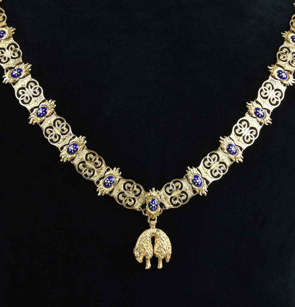 De orde bestaat nog steeds, alleen de betekenis is anders. Onder een portret van Filips de Goede ligt de keten van het Gulden Vlies die koningin Beatrix in 1986 van de Spaanse orde van het Gulden Vlies ontving.